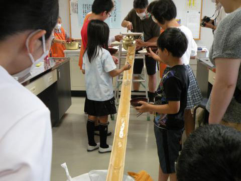 青竹から流れるそうめんを楽しみ、自分で折った織姫や願い事を書いた短冊を 笹竹に飾りました。